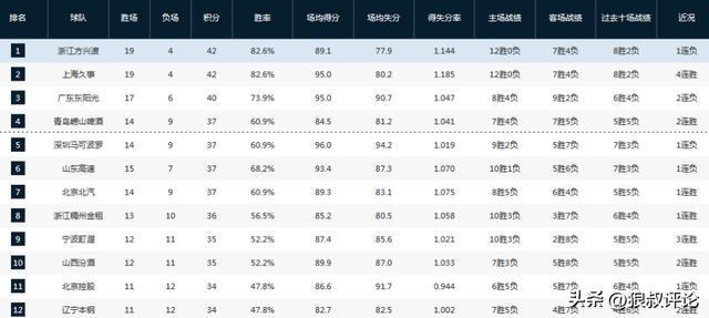 广厦还是最稳的球队,尽管客场出现过一些疲劳的问题导致输球告终,但一波12连胜的主场,足以证明广厦的统治力,他们依旧是新赛季最大的争冠热门球队。